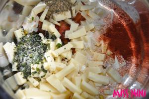 - Ajouter le fromage, la ratatouille, les herbes (fraîches et sèches), le piment et le poivre.
