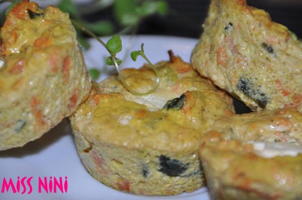 Petits flans féta, courgettes, carottes au curry pour un moule de 12 muffins.