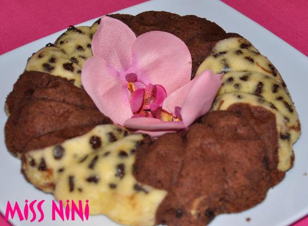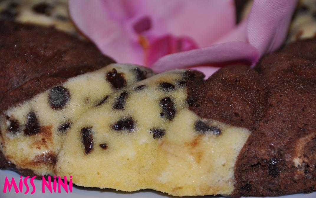 Voici un délicieux gâteau à la cuisson plus que rapide et vraiment original. On a ici 2 parfums: chocolat et vanille- pépites de chocolat qui se complètent magnifiquement bien….