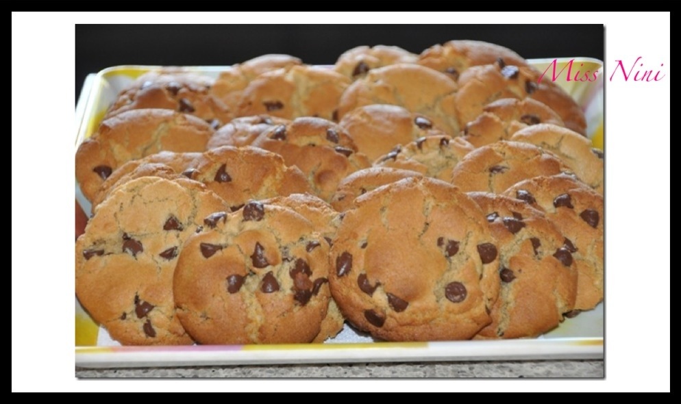 - Cuisson : 11 mn (pour de gros cookies) ou 9 mn pour des cookies plus petits.