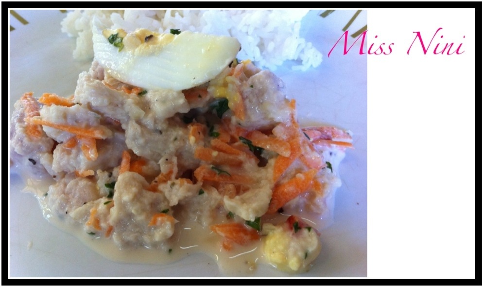 Pour ceux qui ne connaissent pas ce plat, il s’agit en fait de morceaux de poisson cuits dans du citron puis agrémentés de lait de coco, de carottes râpées, de tomates, de concombres, le tout saupoudré de persil ou de coriandre fraiche.