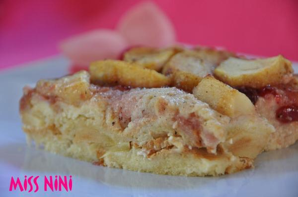 Il s’agit de tranches de brioches entre lesquelles on va glisser des lamelles de pommes et le tout recouvert d’une couche de confiture.