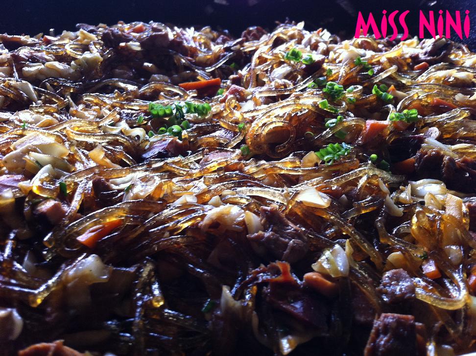 Mais le bami s’accommode de ce que vous avez sous la main: restes de viande en tout genre, on peut y ajouter aussi des petites crevettes séchées (qu’on aura réhydratées).