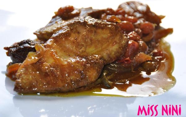 Voici un plat que j’aime particulièrement car il associe des morceaux tendres de poulet à l’acidité du citron et le sucré des fruits secs. Le tout cuit avec des légumes et servi avec une semoule. Bien qu’un tajine ne se serve pas avec de la semoule, moi je le préfère comme ça!